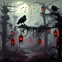 Beschreibung: Ein undurchdringlicher Wald mit düsterer Atmosphäre.